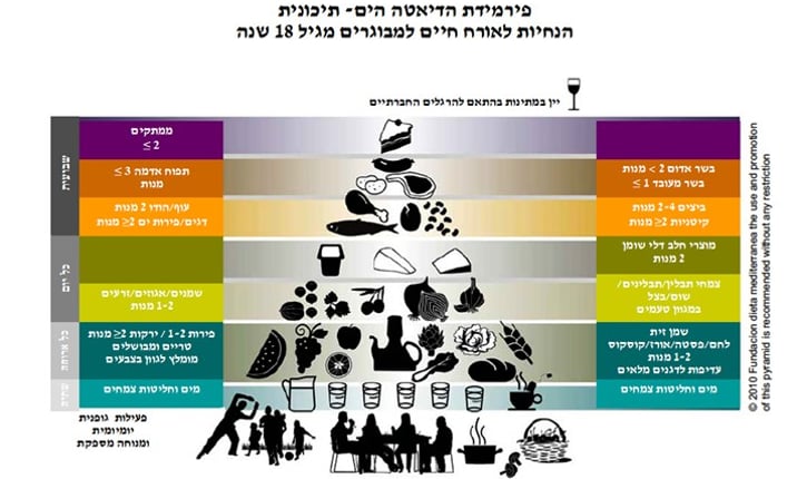 פירט ההנחיות לבחירת מזון נכונה על פי פירמידת הדיאטה הים-תיכונית :