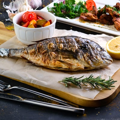 דג צלוי עם ירקות ויין
