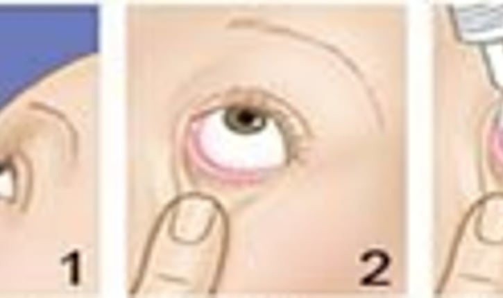 - יש למשוך מטה את העפעף התחתון באמצעות צמר גפן (תמונה 2) ולזלף 2-1 טיפות (תמונה 3)