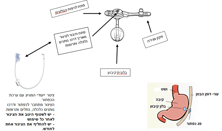 במידה ויש רצון להחליף לצינור כפתור- עליכם להזמין בעצמכם את הצינור המתאים, דרך קופת החולים, וזאת בהתאם למדידת גודל הכפתור המתאים במרפאת גסטרו.